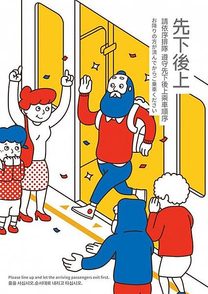 平面設計師以「幫助環境改善」為出發點,針對各種情境設計了多款捷運宣導海報,簡單的配色、詼諧的人物表情和易懂的構圖,獲得網友熱烈迴響,不少人都希望,這些設計能真正獲得捷運公司採用。